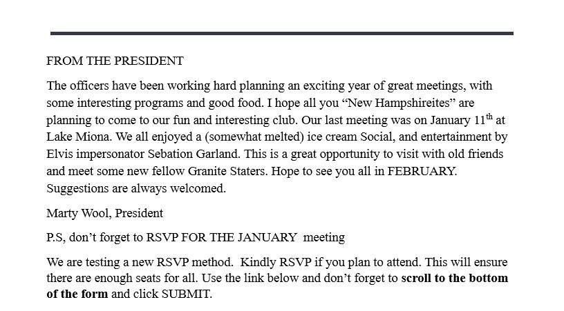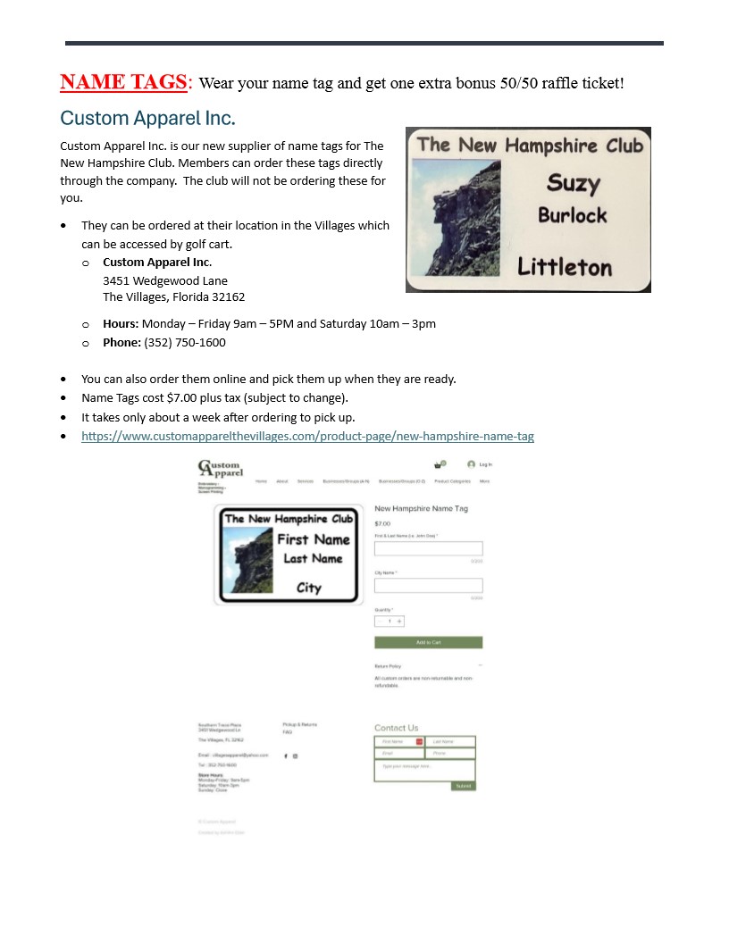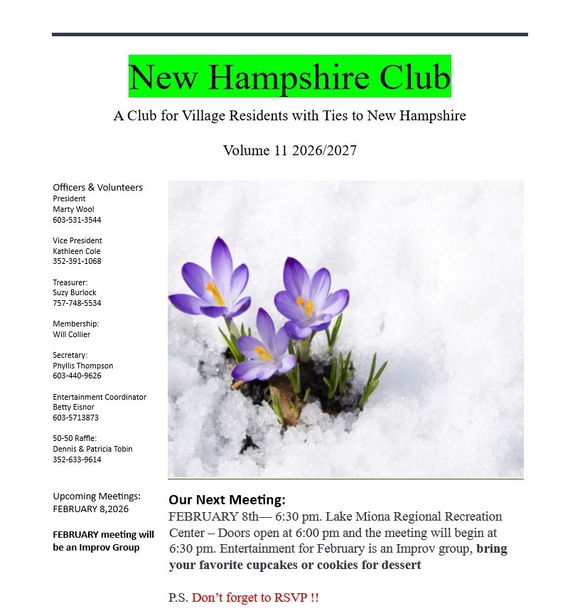 The New Hampshire Club News Letter